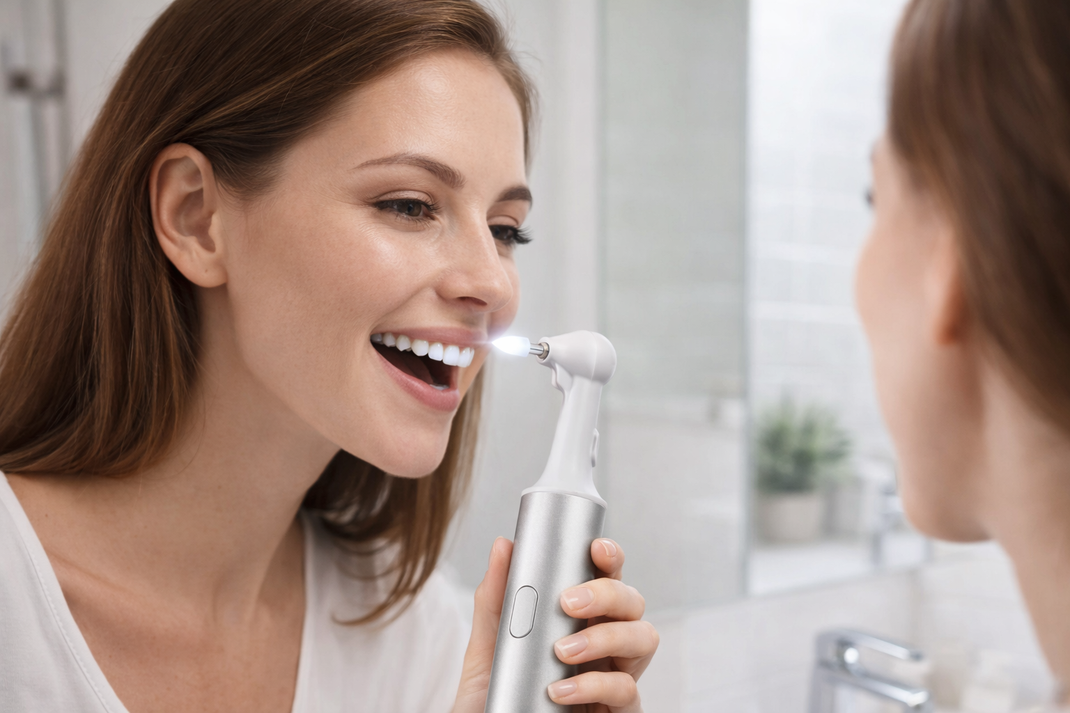 Answer 2: Yes, it is safe to use at home. The device is designed with user-friendliness and safety in mind, allowing for customizable intensity settings to suit your comfort level, making it ideal for everyday use without the harsh chemicals found in some dental products.